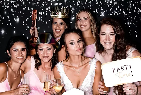 This is our Classy B&W Photo Booth Experience. It includes everything from Party Pix Booth PLUS It's enhanced by our glam skin smooth filter that makes everyone in the photo look fabulous.